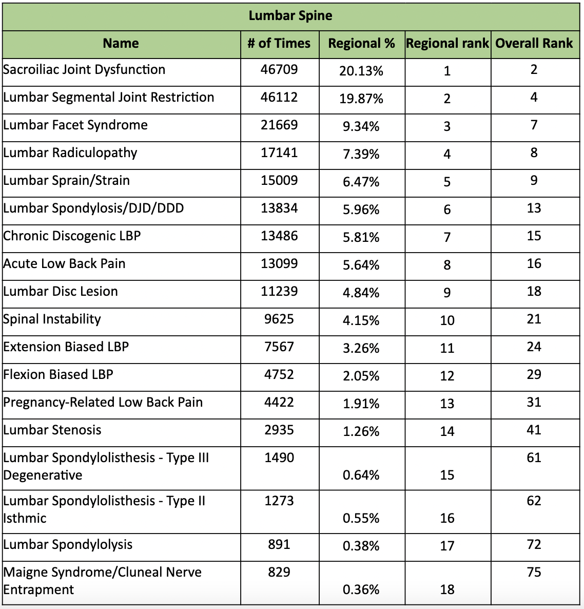 Statistical Reporting of 631,970 Clinical Diagnoses Collected from 2212 Evidence-Based Chiropractic Providers Between July 2019- June 2021